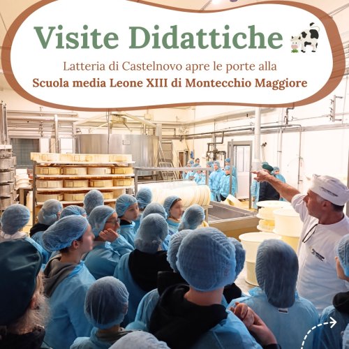 Nei giorni scorsi abbiamo avuto il piacere di accogliere in Latteria Castelnovo gli studenti della Scuola media Leone XIII di Montecchio Maggiore, che hanno scelto il nostro caseificio come tappa di una giornata didattica dedicata alla scoperta del mondo della produzione casearia.